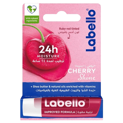 * Gives a touch of delicate colour and prettifies your lips with a soft shine. Delights your lips with a fruity cherry aroma. * Labello lip balm is free of mineral oils and enriched with natural oils. * Helpful for dry and chapped lips. * Provides long-lasting moisture for your lips for 24h. * For best results apply daily to your lips.